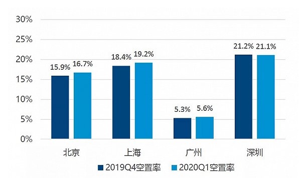 受疫情影響,一季度北上廣深4城寫字樓市場(chǎng)基本處于停緩狀態(tài),空置率在此前高居不下的基礎(chǔ)上持續(xù)推升,再創(chuàng)新高。