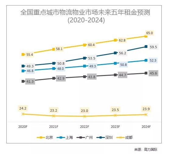 具體來看,一季度北京倉儲(chǔ)市場(chǎng)租金處于高位水平,環(huán)比上漲0.6%,至1.72元/平方米/天!吨袊飿I(yè)市場(chǎng)2020展望》報(bào)告顯示,北京市場(chǎng)倉儲(chǔ)物流需求量較大,加上政策對(duì)于物流用地的限制,未來北京倉儲(chǔ)市場(chǎng)可租面積有限,租金將持續(xù)走高。