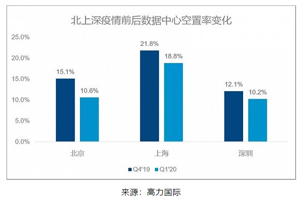 受疫情期間線上信息量激增,疊加新基建影響,數(shù)據(jù)中心成2020年投資風(fēng)口。一季度北上深一線城市數(shù)據(jù)中心空置率相對(duì)于去年年底明顯降低。由于能評(píng)政策的限制,一線城市的數(shù)據(jù)中心供給較為稀缺,資本正積極尋找優(yōu)質(zhì)投資標(biāo)的。