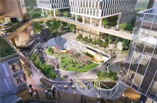 連接寫字樓、商業(yè)、酒店三大業(yè)態(tài),雙層景觀社交場