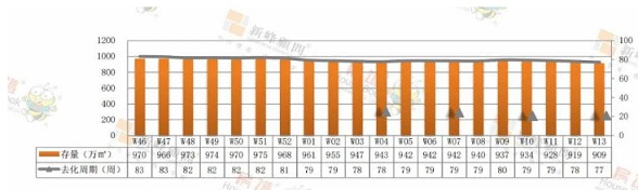 七區(qū)商品住宅存量909萬(wàn)㎡,去化周期77周。