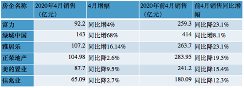 除前述龍頭房企外,包括富力、雅居樂(lè)、正榮地產(chǎn)、美的置業(yè)、佳兆業(yè)等多家房企陸續(xù)公布了4月銷售數(shù)據(jù)。根據(jù)觀點(diǎn)指數(shù)公布的2020年前4月房企銷售30強(qiáng)榜單,上述房企除綠城中國(guó)外,其余企業(yè)銷售均同比下降。