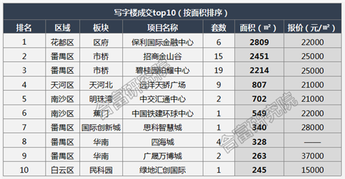 本月寫(xiě)字樓成交主要集中在番禺及花都區(qū),由于上月大宗交易集中釋放,本月其余區(qū)域僅有零星成交量。