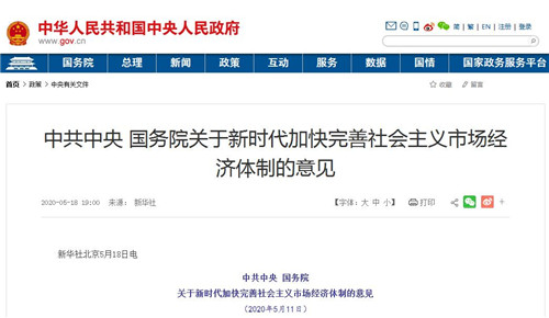 關(guān)于新時代加快完善社會主義市場經(jīng)濟體制的意見