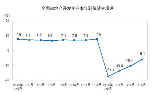 1—5月份,房地產(chǎn)開發(fā)企業(yè)到位資金62654億元,同比下降6.1%,降幅比1—4月份收窄4.3個(gè)百分點(diǎn)。其中,國(guó)內(nèi)貸款10703億元,下降0.5%;利用外資34億元,增長(zhǎng)15.3%;自籌資金20106億元,下降0.8%;定金及預(yù)收款19479億元,下降13.0%;個(gè)人按揭貸款10154億元,下降0.9%。