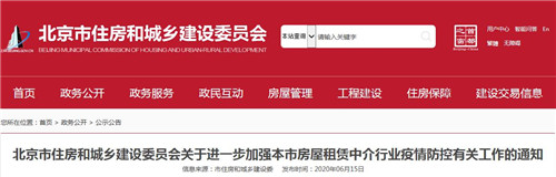 房訊網訊 6月15日,北京市住建委發(fā)布《關于進一步加強本市房屋租賃中介行業(yè)疫情防控有關工作的通知》。