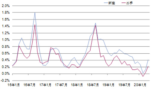 圖4:一、二線城市新建商品住宅銷售價(jià)格指數(shù),2020年5月