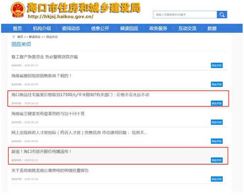 查詢?谑芯纸ň志W(wǎng)站可以看到,早在2019年2月,就有微信朋友圈出現(xiàn)“海口限價(jià)由17300調(diào)整到24000”等消息,當(dāng)時(shí),?谖飪r(jià)局、住建局聯(lián)合發(fā)表鄭重聲明,?谑袌(jiān)決貫徹落實(shí)黨中央國(guó)務(wù)院房地產(chǎn)調(diào)控決策部署,堅(jiān)決遏制房?jī)r(jià)上漲,此消息純屬謠言。