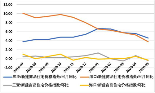環(huán)比來(lái)看,?谛陆ㄉ唐纷≌瑑r(jià)格指數(shù)環(huán)比下跌0.3%,4月為環(huán)比上漲0.5%;三亞新建商品住宅價(jià)格指數(shù)環(huán)比下跌0.4%,4月為環(huán)比上漲0.7%。