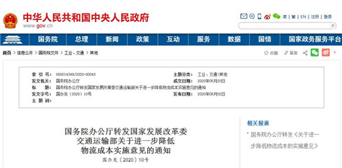 國(guó)家發(fā)展改革委、交通運(yùn)輸部《關(guān)于進(jìn)一步降低物流成本的實(shí)施意見》已經(jīng)國(guó)務(wù)院同意,現(xiàn)轉(zhuǎn)發(fā)給你們,請(qǐng)認(rèn)真貫徹執(zhí)行。