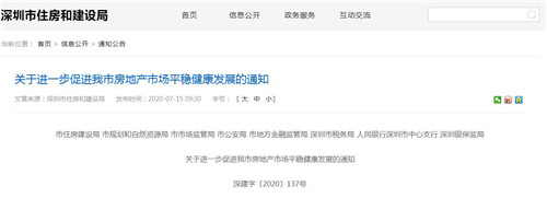 市住房建設(shè)局 市規(guī)劃和自然資源局 市市場(chǎng)監(jiān)管局 市公安局 市地方金融監(jiān)管局 深圳市稅務(wù)局 人民銀行深圳市中心支行 深圳銀保監(jiān)局關(guān)于進(jìn)一步促進(jìn)我市房地產(chǎn)市場(chǎng)平穩(wěn)健康發(fā)展的通知