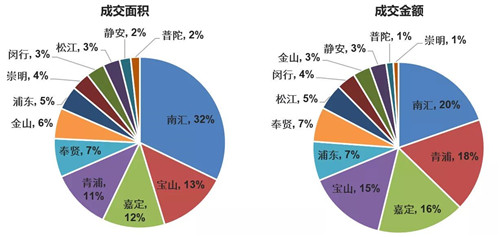 從成交金額來看,南匯、青浦、嘉定、寶山4區(qū)同樣位居前列,4區(qū)土地成交金額占比合計(jì)68.8%;其中,南匯成交金額占比全市最高,為19.7%。