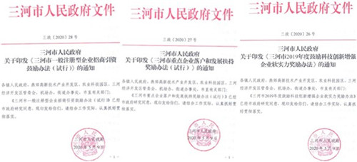 為了提升區(qū)域內(nèi)企業(yè)軟實(shí)力,扶持企業(yè)的創(chuàng)新進(jìn)步,鼓勵(lì)獎(jiǎng)勵(lì)一般企業(yè)和重點(diǎn)企業(yè)的落戶和發(fā)展,5月9日,三河市又分別印發(fā)了《三河市2019年度鼓勵(lì)科技創(chuàng)新增強(qiáng)企業(yè)軟實(shí)力獎(jiǎng)勵(lì)辦法》、《三河市重點(diǎn)企業(yè)落戶和發(fā)展扶持獎(jiǎng)勵(lì)辦法(試行)》、《三河市一般注冊(cè)型企業(yè)招商引資鼓勵(lì)辦法(試行)》,引導(dǎo)產(chǎn)業(yè)和創(chuàng)新資源聚集,壯大區(qū)域經(jīng)濟(jì)總量和綜合實(shí)力。