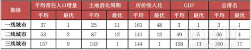 各線城市典型參考因素排名
