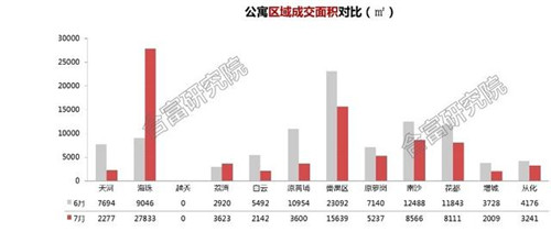 在成交區(qū)域分布方面,7月寫(xiě)字樓成交主要集中在番禺、蘿崗及南沙區(qū),對(duì)比6月的半年度峰值,7月區(qū)域成交量基本呈下降態(tài)勢(shì),番禺、蘿崗、黃埔等重點(diǎn)區(qū)域成交下滑6成以上。