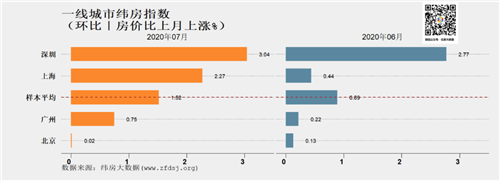 一線城市中深圳上海漲幅擴(kuò)大