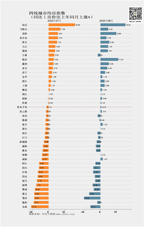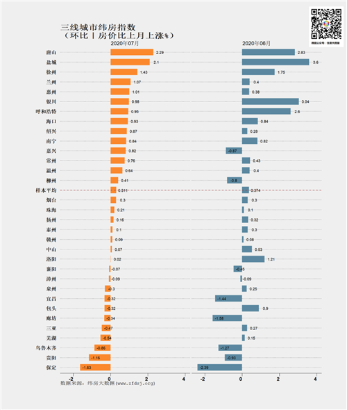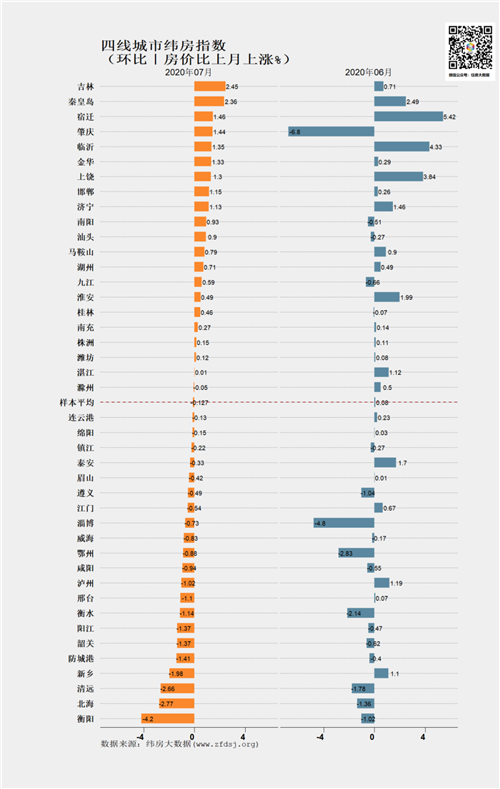 8月24日,緯房大數(shù)據(jù)發(fā)布的2020年7月重點(diǎn)城市緯房指數(shù)。緯房指數(shù)顯示,一線城市漲幅擴(kuò)大,二三四線城市穩(wěn)中有升。