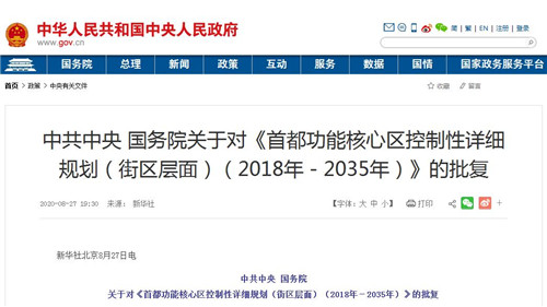 關(guān)于對《首都功能核心區(qū)控制性詳細規(guī)劃(街區(qū)層面)(2018年-2035年)》的批復