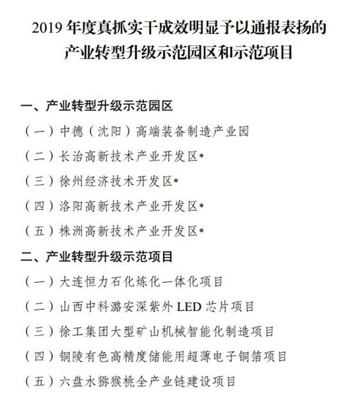 同時,結(jié)合產(chǎn)業(yè)轉(zhuǎn)型升級示范區(qū)建設進展,對在產(chǎn)業(yè)轉(zhuǎn)型升級相關(guān)領(lǐng)域真抓實干取得明顯成效的中德(沈陽)高端裝備制造產(chǎn)業(yè)園等5個園區(qū)和大連恒力石化煉化一體化項目等5個項目予以通報表揚。