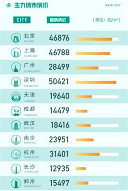 58同城、安居客《8月國民安居指數(shù)報告》顯示,8月67城新房在線均價為16481元/㎡,環(huán)比上漲0.14%,在67城中有33城新房在線均價環(huán)比上漲。主力城市中深圳相比上月略微下降,新房在線均價為50421元/㎡。北京、上海新房均價分別以46876元/㎡和46788元/㎡排名第二和第三。廣州、南京新房在線均價均在2萬元/㎡水平之上,新一線城市中的杭州新房在線均價則達到31401元/㎡,天津跌出2萬元/㎡行列,為19640元/㎡。城市房價環(huán)比漲幅TOP5的城市分別為無錫、呼和浩特、漳州、西安和九江,其中無錫環(huán)比增幅最高達到8.3%,呼和浩特和漳州環(huán)比漲幅也都超過7%。