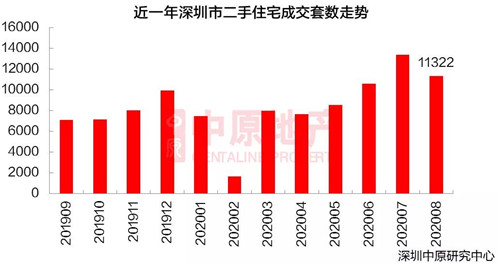 9月2日,深圳中原研究中心數(shù)據(jù)顯示,8月份,深圳二手住宅過(guò)戶套數(shù)回落。數(shù)據(jù)顯示8月深圳二手住宅成交套數(shù)為11322套,環(huán)比下滑15.6%;成交面積為97.5萬(wàn)平,環(huán)比下滑15.0%。