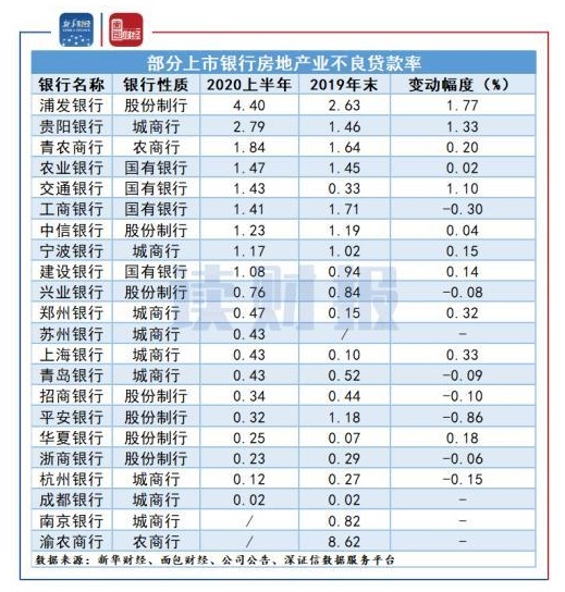 梳理中報(bào)信息發(fā)現(xiàn),上市商業(yè)銀行中僅20家銀行披露了2020年上半年房地產(chǎn)業(yè)不良貸款率。