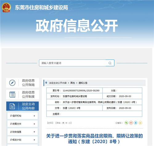 房訊網(wǎng)訊 9月3日,東莞市住房和城鄉(xiāng)建設(shè)局、東莞市不動(dòng)產(chǎn)登記中心等單位聯(lián)合出臺(tái)《關(guān)于進(jìn)一步貫徹落實(shí)商品住房限購(gòu)、限轉(zhuǎn)讓政策的通知》,對(duì)7月出臺(tái)的樓市限購(gòu)、限轉(zhuǎn)讓新政的相關(guān)問(wèn)題,出臺(tái)政策細(xì)則。
