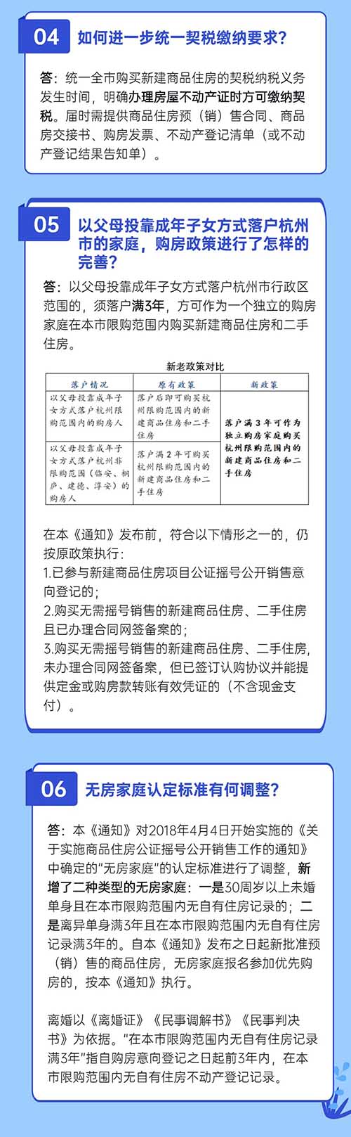 為貫徹落實(shí) “房子是用來(lái)住的、不是用來(lái)炒的”要求,支持合理自住需求,遏制投機(jī)炒房,促進(jìn)杭州房地產(chǎn)市場(chǎng)平穩(wěn)健康發(fā)展,杭州市房地產(chǎn)平穩(wěn)健康發(fā)展領(lǐng)導(dǎo)小組辦公室發(fā)布《關(guān)于進(jìn)一步促進(jìn)房地產(chǎn)市場(chǎng)平穩(wěn)健康發(fā)展的通知》(以下簡(jiǎn)稱(chēng)《通知》),對(duì)土地市場(chǎng)、住房貸款、稅收政策、限購(gòu)政策、無(wú)房家庭認(rèn)定等方面內(nèi)容作了進(jìn)一步明確規(guī)定。
