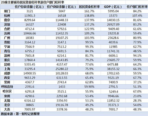 這幾個城市的居民資金杠桿率高,與房價水平較高、居民投資氛圍較濃有關(guān)。