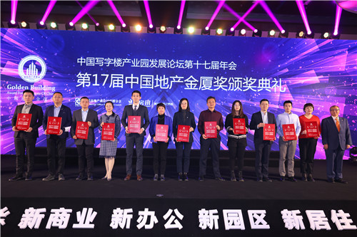 年會上,2020年第十七屆中國地產(chǎn)金廈獎盛大揭曉,對年度涌現(xiàn)出來的優(yōu)秀行業(yè)企業(yè)、商辦產(chǎn)業(yè)園項目進行了表彰與嘉獎。