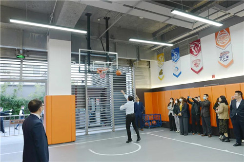 參會(huì)嘉賓與首批球友投籃互動(dòng)