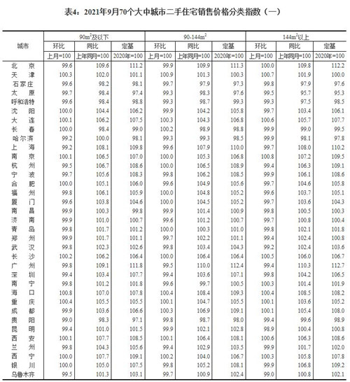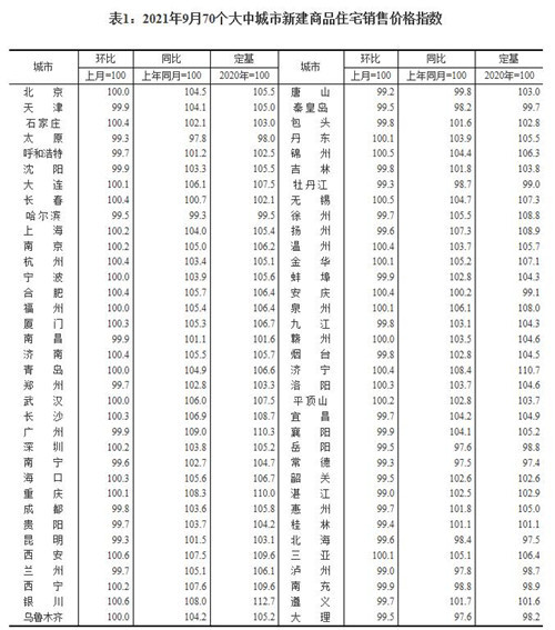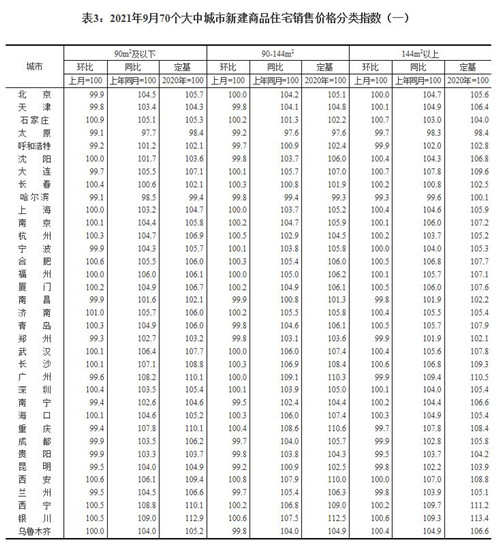 房訊網(wǎng)訊 10月20日,國家統(tǒng)計(jì)局公布2021年9月份70個(gè)大中城市商品住宅銷售價(jià)格變動(dòng)情況。數(shù)據(jù)顯示,9月份70個(gè)大中城市中有27城新建商品住宅價(jià)格環(huán)比上漲。