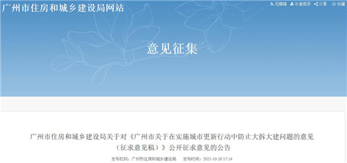 房訊網訊 10月20日,廣州市住房和城鄉(xiāng)建設局發(fā)布《廣州市關于在實施城市更新行動中防止大拆大建問題的意見(征求意見稿)》,積極穩(wěn)妥實施城市更新行動,保護、利用、傳承好歷史文化遺產,防止大拆大建問題,并向社會公眾公開征求意見。