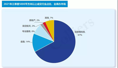 一方面,數(shù)字經(jīng)濟(jì)時(shí)代互聯(lián)網(wǎng)企業(yè)發(fā)展勢(shì)頭迅猛,中小科創(chuàng)企業(yè)層出不窮,為寫(xiě)字樓產(chǎn)業(yè)園需求增長(zhǎng)奠定了產(chǎn)業(yè)和企業(yè)基礎(chǔ)。高力國(guó)際報(bào)告顯示,三季度北京寫(xiě)字樓市場(chǎng)需求持續(xù)復(fù)蘇,單季度凈吸納量達(dá)21.5萬(wàn)平方米,其中5000平以上的大面積成交仍以互聯(lián)網(wǎng)科技類(lèi)企業(yè)為主,占比高達(dá)65%。