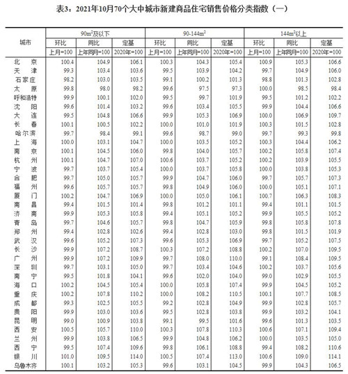 房訊網(wǎng)訊 11月15日,國家統(tǒng)計局發(fā)布10月份70個大中城市商品住宅銷售價格變動情況。