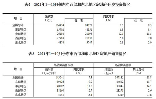 1—10月份,東部地區(qū)房地產開發(fā)投資65902億元,同比增長6.8%;中部地區(qū)投資26194億元,增長12.1%;西部地區(qū)投資27963億元,增長5.0%;東北地區(qū)投資4874億元,增長0.8%。