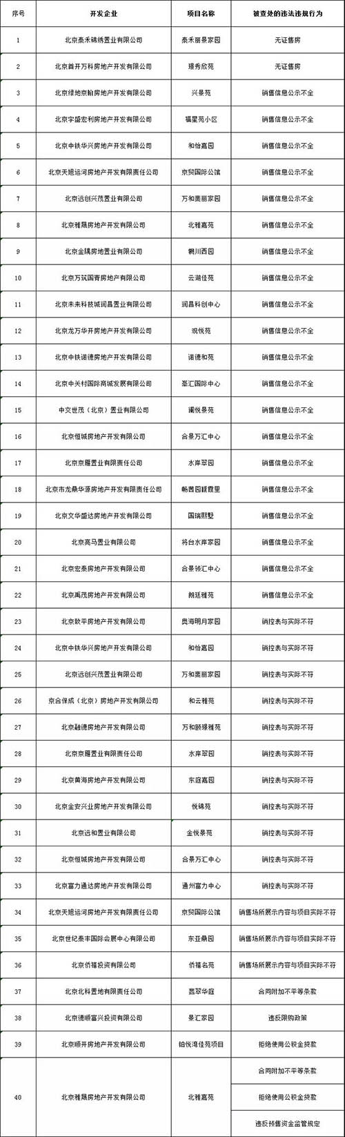 除此之外,對北京首開萬科房地產(chǎn)開發(fā)有限公司違規(guī)預(yù)售璟秀欣苑項(xiàng)目,北京未來科技城潤昌置業(yè)有限公司未按規(guī)定在潤昌科創(chuàng)中心項(xiàng)目銷售場所明示所售房屋相關(guān)信息等22家存在違法違規(guī)問題的開發(fā)企業(yè)立案處罰。