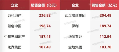 房企武漢案場銷售額百億榜 來源:中指院