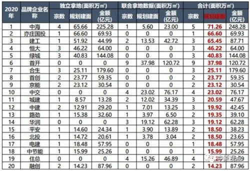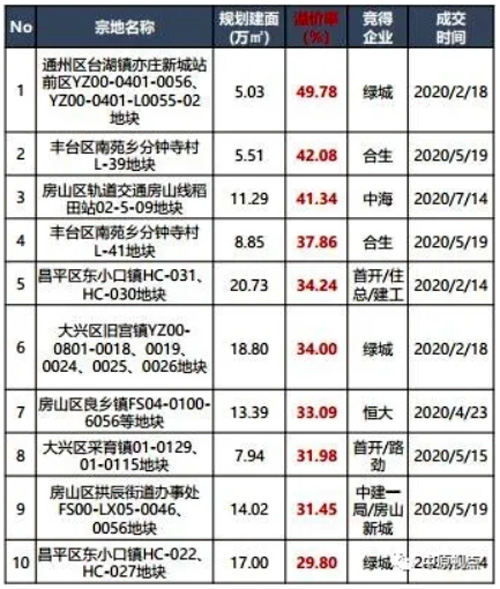 表:2020年住宅用地成交樓面價(jià)排行榜前10