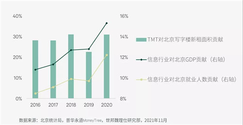 近年來,數(shù)字經(jīng)濟(jì)對于經(jīng)濟(jì)增長的貢獻(xiàn)不斷提升。數(shù)字經(jīng)濟(jì)的核心部分科技/新媒體/通訊(TMT)產(chǎn)業(yè)早已成為商業(yè)地產(chǎn)需求的支柱行業(yè)之一。北京一直是全國乃至全球的科技創(chuàng)新中心之一,近年更趨凸顯對數(shù)字經(jīng)濟(jì)的集聚優(yōu)勢。尤其是未來北京數(shù)字自由貿(mào)易區(qū)、北京證券交易所和雄安新區(qū)國家數(shù)字經(jīng)濟(jì)創(chuàng)新發(fā)展試驗區(qū)的創(chuàng)建,將為未來數(shù)字經(jīng)濟(jì)發(fā)展創(chuàng)造更有利的政策環(huán)境。