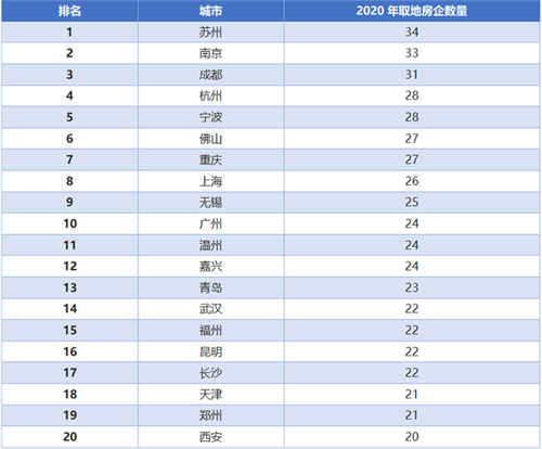 2020年部分城市拿地房企數(shù)量情況 來源:貝殼研究院