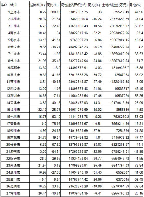 “土地溢價(jià)率上行主要體現(xiàn)了部分城市,雖然整體土地市場(chǎng)地價(jià)依然未全面上漲,但部分城市部分土地的價(jià)格已經(jīng)達(dá)到了歷史高點(diǎn)!睆埓髠フf。