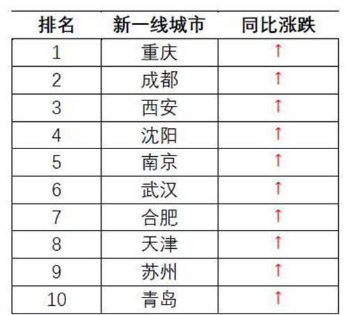 新一線城市二手房找房熱度排名前十城市均有不同程度的上漲;西南兩城重慶與成都二手房找房熱度排名前二位,西安二手房找房熱度排名第三位。整體來(lái)看,前十位城市二手房找房熱度同比上漲幅度較為明顯。