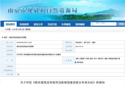 房訊網(wǎng)訊 3月10日,南京市規(guī)劃和自然資源局南京市城鄉(xiāng)建設委員會發(fā)布了《既有建筑改變使用功能規(guī)劃建設聯(lián)合審查辦法》的通知,4月9日起正式施行。