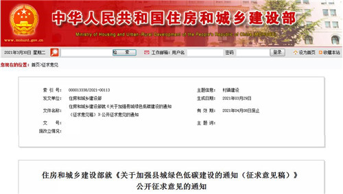 住房和城鄉(xiāng)建設(shè)部就《關(guān)于加強縣城綠色低碳建設(shè)的通知(征求意見稿)》公開征求意見的通知