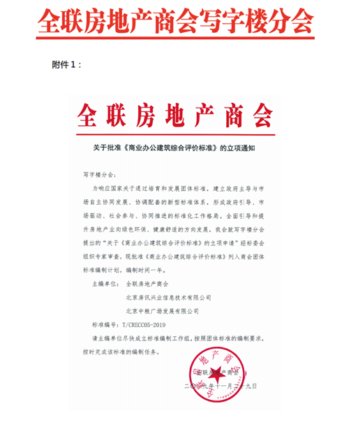 1、全聯(lián)房地產(chǎn)商會(huì)《商業(yè)辦公建筑綜合評(píng)價(jià)標(biāo)準(zhǔn)》批準(zhǔn)文件