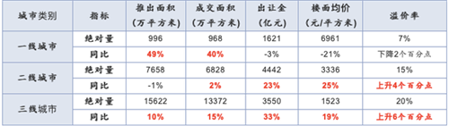 2021年1~3月不同城市土地市場情況 數(shù)據(jù)來源:中指院