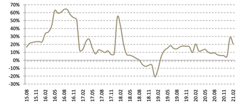 貝殼研究院監(jiān)測數(shù)據(jù)顯示,18個重點(diǎn)城市二手住宅實(shí)際成交量比2020年第四季度增長14%,在2020年一季度受疫情影響基數(shù)較低的情況下同比上升了120%。特別是一線城市整體市場熱度較高,1月份深圳、北京環(huán)比增速在30%以上,上海成交量環(huán)比增長也達(dá)到了20%。