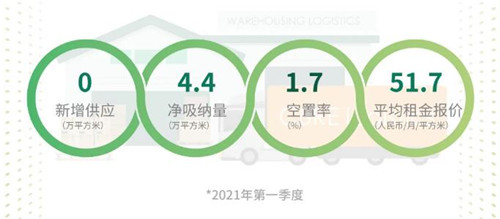 從具體指標(biāo)來看,一季度北京倉儲物流市場凈吸納量環(huán)比上升近兩倍至4.4萬平方米;整體空置率環(huán)比下降1.7個百分點(diǎn)至1.7%,自2019年第一季度以來首次降至2%以下;季內(nèi)多宗成交顯示項(xiàng)目租金較之前有明顯提升,全市平均租金環(huán)比加速上漲1.4%至每月每平方米51.7元。