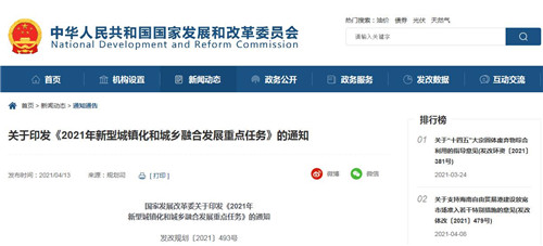 國家發(fā)展改革委關(guān)于印發(fā)《2021年新型城鎮(zhèn)化和城鄉(xiāng)融合發(fā)展重點任務(wù)》的通知